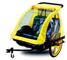 Kinderanhänger können für maximal zwei Kinder mit einer Körpergröße von bis zu 100 cm (insgesamt max. 35 KG) gemietet werden.
